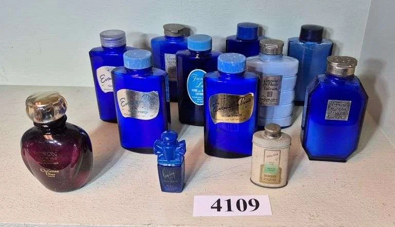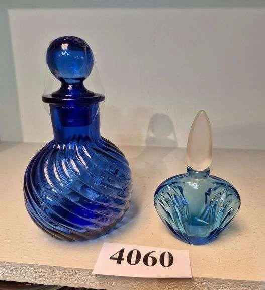 4060 Two blue glass perfume bottles