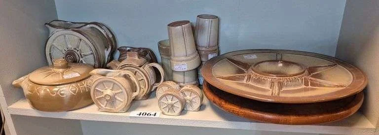 4064 Shelf of Frankoma Wagon Wheel pottery