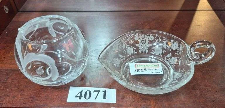 4071 Small Waterford Marquis etched Rose bowl, Viking Prelude etched nappy