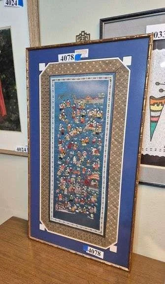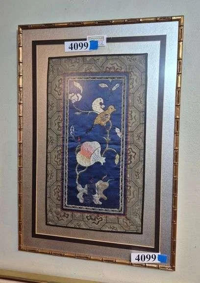 4078 Framed Chinese silk embroidered panel