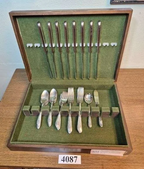 4087 William Rogers Inheritance pattern Silver Plate flatware in silver chest