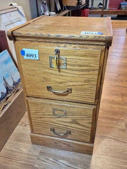 4093 Two-drawer letter size Oak file cabinet with keys