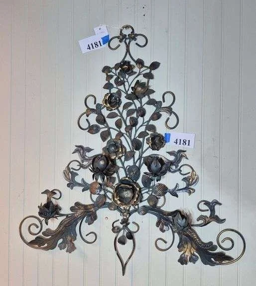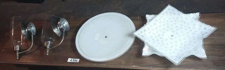 4306 Pair of etched glass and brushed nickel? Wall sconce candle holders, four vintage ceiling glass light shades