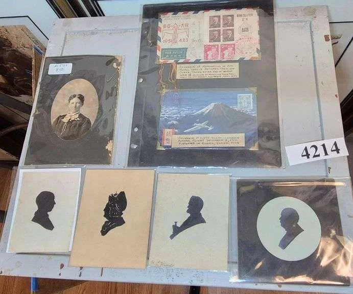 4080 Stamps, ephemera, small wood box, Etc