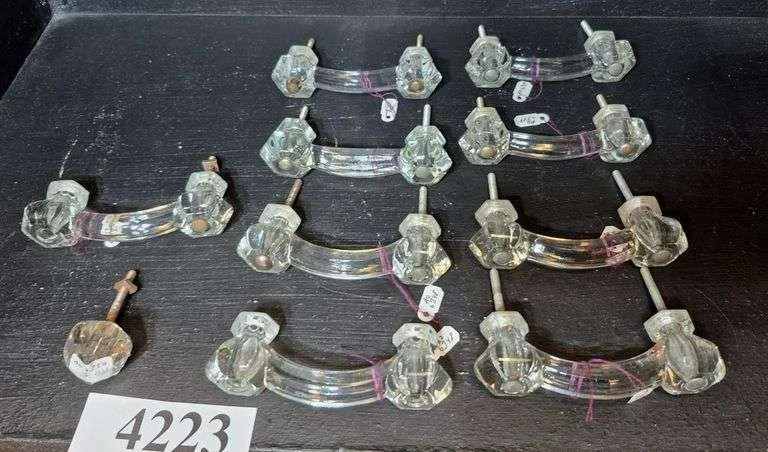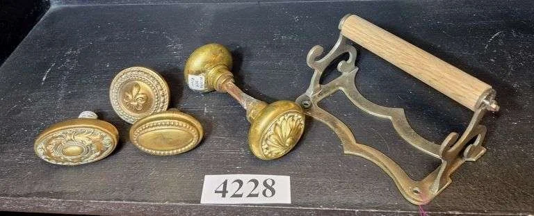 4352 Drawer pulls, casters, curtain clips, antique door hinge, Etc