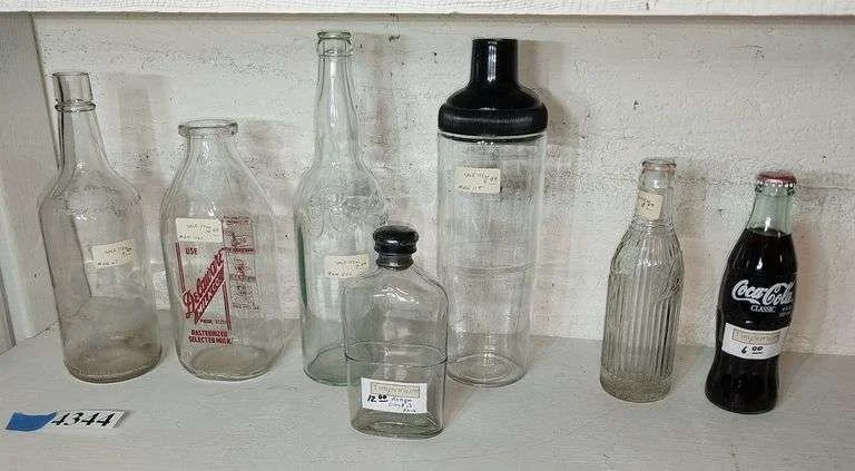 4344 Coca-cola, milk, Olrey & Co, Schille, and other bottles, cocktail shaker