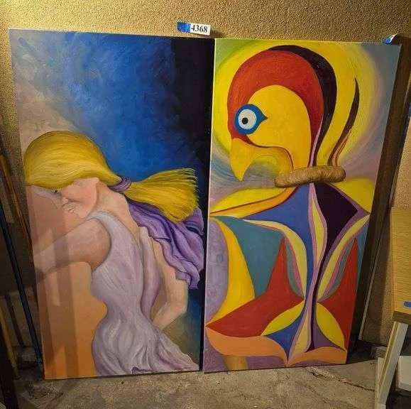 4368 Two large artist signed paintings on canvas