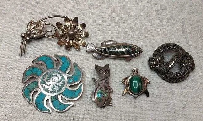 3040a 6 sterling silver brooches
