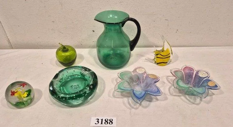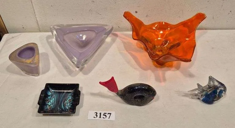 3259 Glass blocks, leather kangaroo, ashtrays, but man shakers, yo-yo, coin bank, Etc