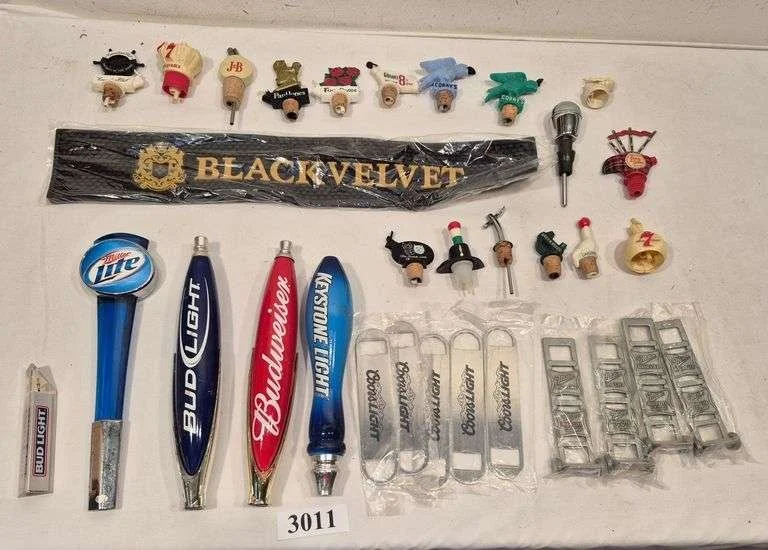 3011 Bar items including beer taps, advertising bottle openers, bottle toppers, Etc