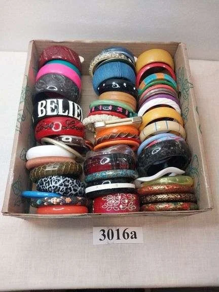3016a Plastic, wood, fabric covered bangle bracelets