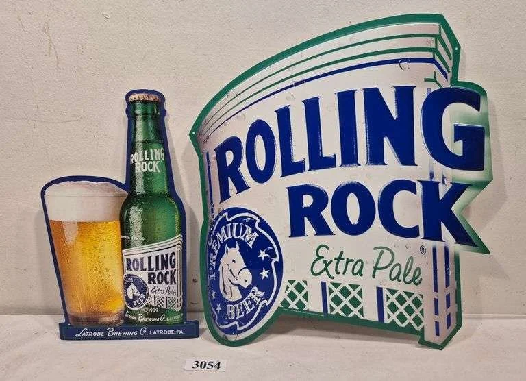 3054 Two metal Rolling Rock Beer Advertising Signs