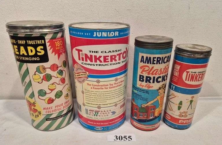 3055 Vintage toys including Tinker toys, American bricks, beads