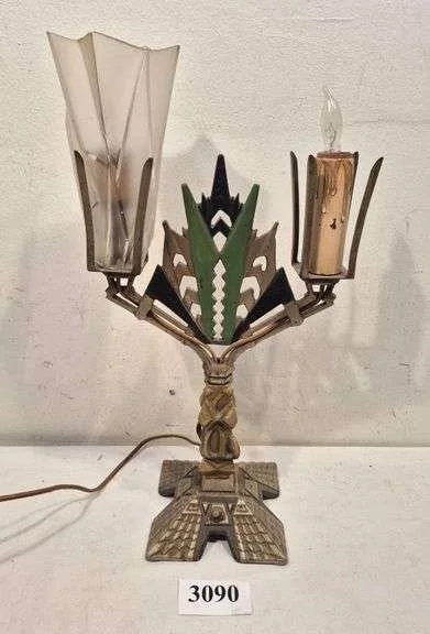 3067 Antique four-way floor lamp with green stone in base