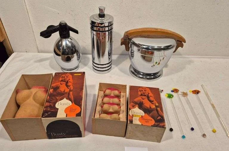 3320 Vintage beer bottles, cocktail shakers, bar items