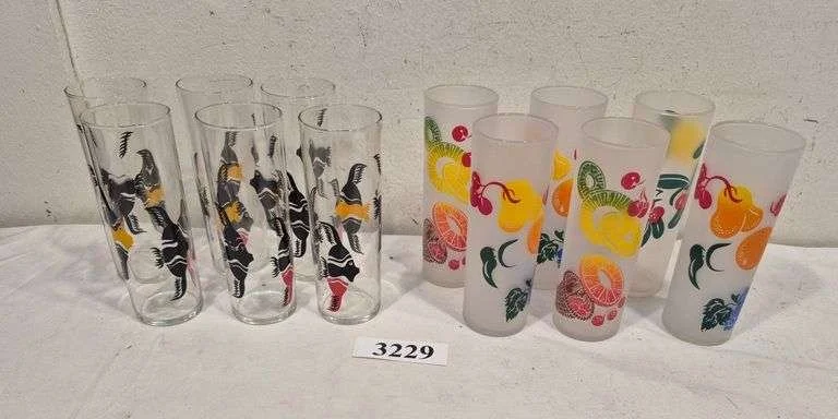 3065 Mid-century drinking glasses, BC glasses, vases, plastic and glass bowls, Etc