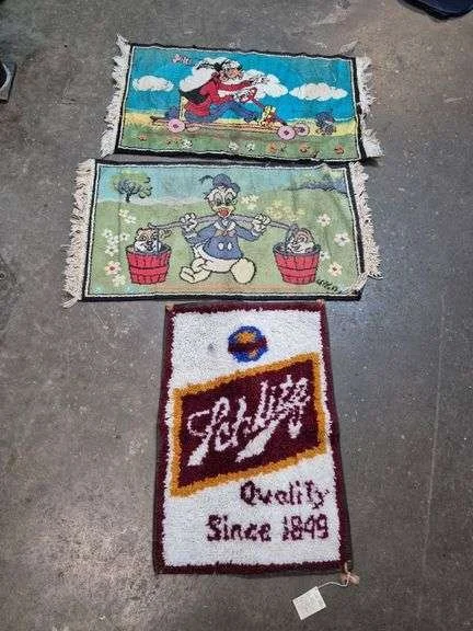 3274 Two Disney rugs, Schlitz hook rug