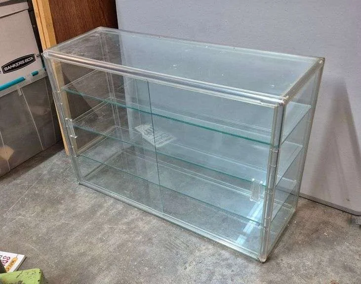 3257 glass display case with three glass shelves