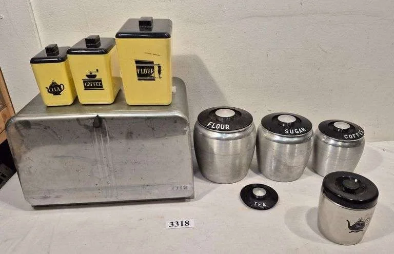 3318 Mid-century canisters, bread box