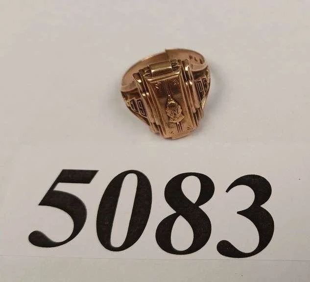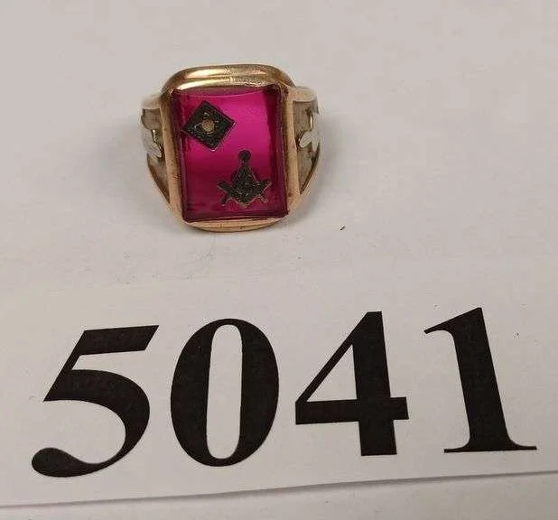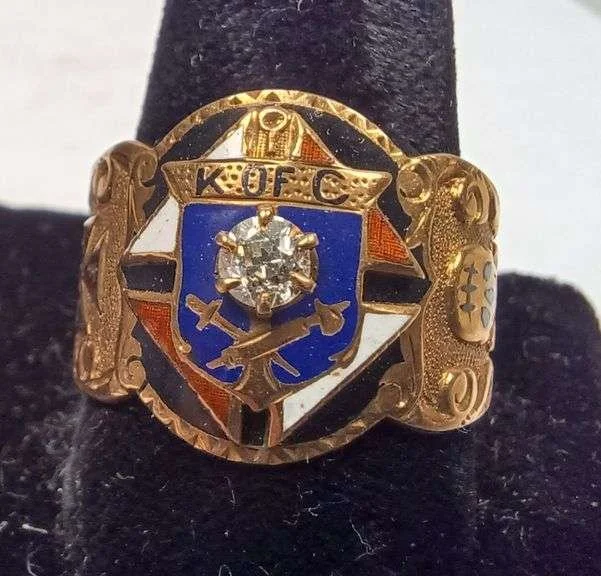 5013 Antique gold men's Knights of Columbus Masonic ring with diamond.