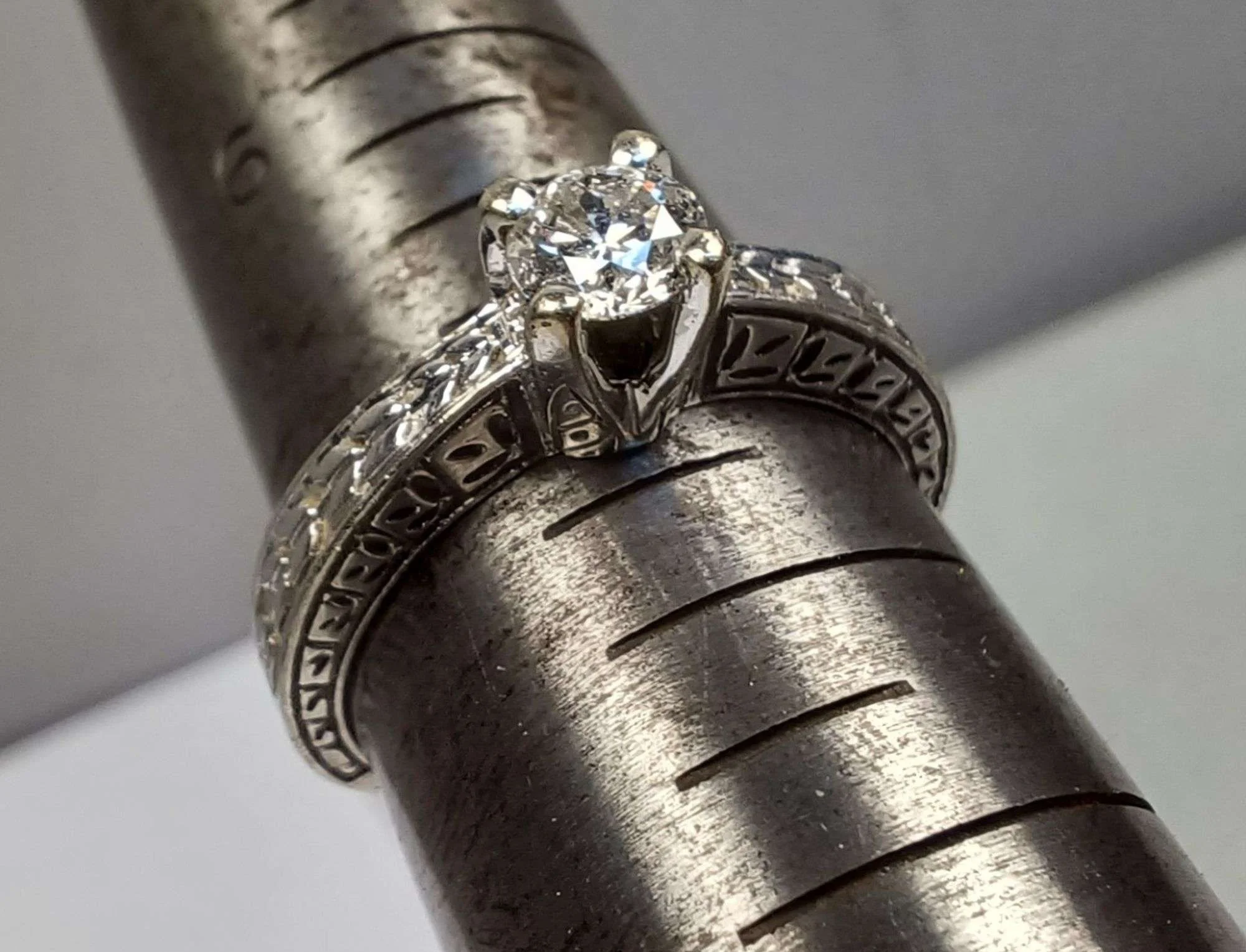 5021 14k white gold vintage engagement ring with solitaire diamond.