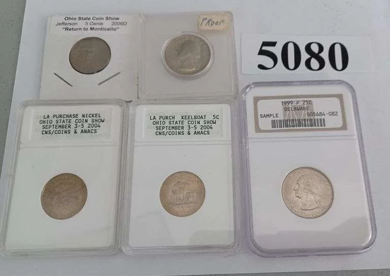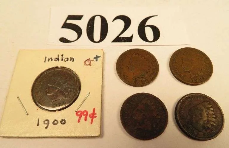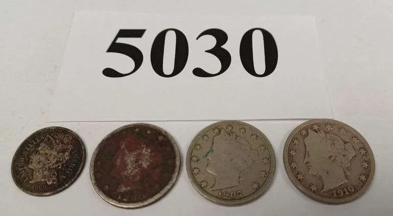 5030 1869 3-cent nickel, 1888, 1907, and 1910 V nickels