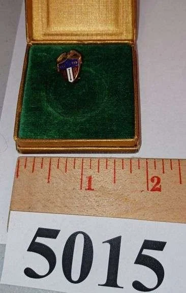 5015 Antique gold filled pin with the letters AIB and a dollar sign on it.