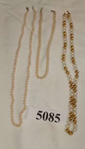 5085 (3) vintage pearl necklaces with 14k gold clasps