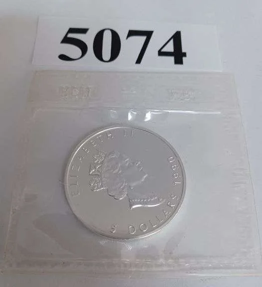 5074 1990 Canada $5 1 oz. Silver coin in mint packaging