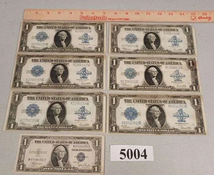 5004 (6) 1923 large note $1 silver certificates, (1) 1935 $1 silver certificate