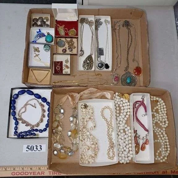 5033 Costume jewelry including necklaces, pendants, button covers, etc.