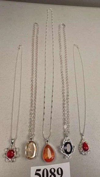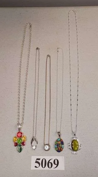 5043 (5) Sterling Silver necklaces, 3 have pendants