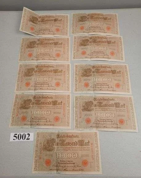 5002 (9) 1910 1000 Mark German Reichsbanknotes