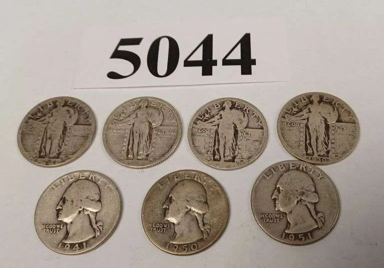 5044 (4) Standing Liberty quarters, (3) silver pre-1965 Washington quarters