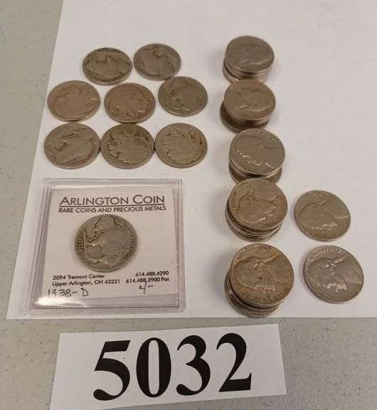 5032 (9) Buffalo nickels, (27) pre-1965 Jefferson nickels