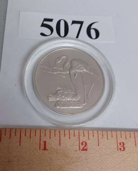 5076 1971 Franklin Mint Robert's Birds Greater Flamingo No. 6 Sterling Silver round in plastic case, 2 oz.