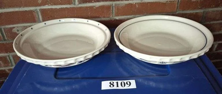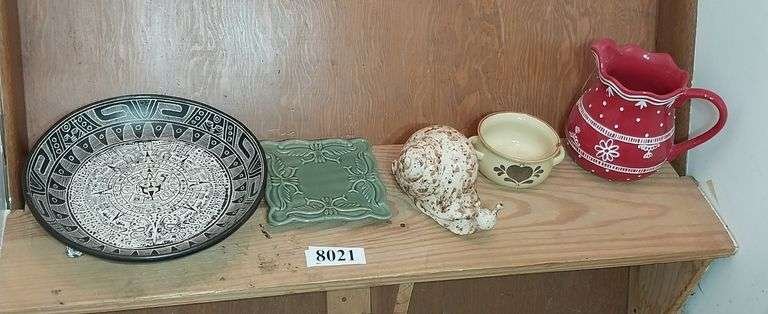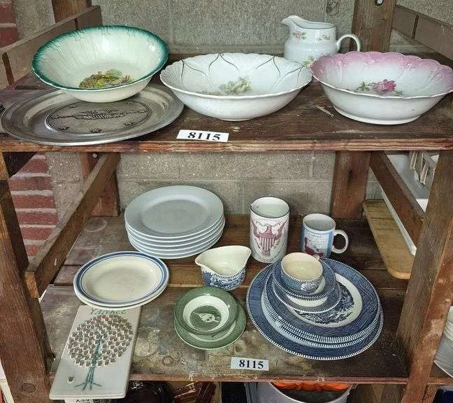 8115 Courier and Ives dinnerware, deep bowls, plates, Yankee pottery tile wall hanging, Etc