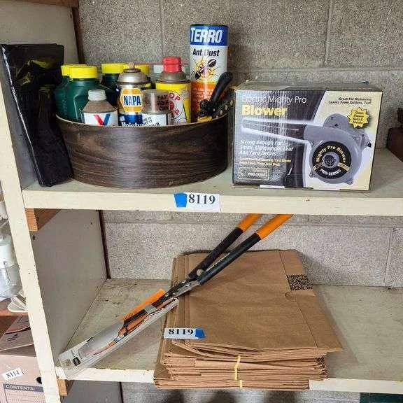 8119 Hedge trimmers, yard waste bags, Mighty Pro blower, Automotive fluids, Etc