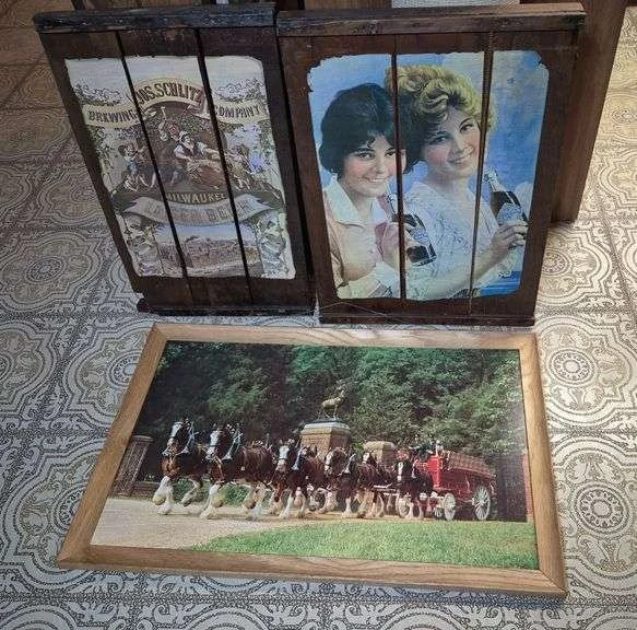 8073 Budweiser Clydesdales framed print, Schlitz and Coca-Cola reproduction signs