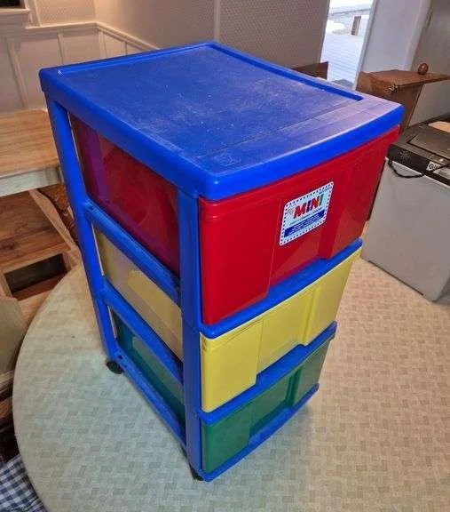 8042 3-drawer rolling organizer full of building toys, Paddington Bear