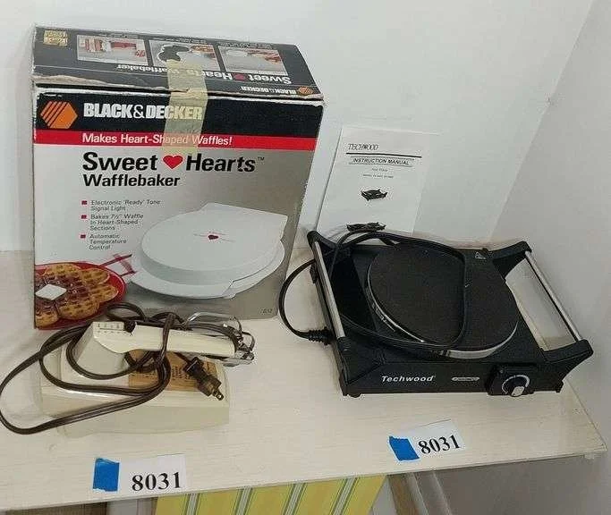 8031 Black & Decker sweethearts waffle Baker, JCPenney 5 speed mixer, Techwood hot plate