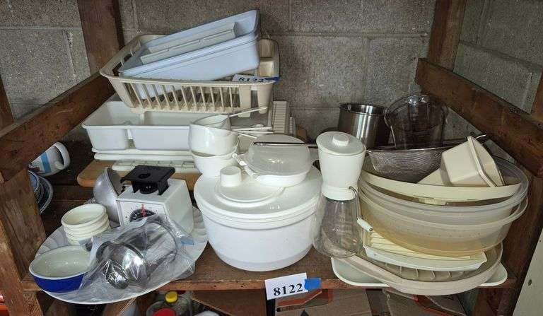 8122 Dish rack, scale, measuring cups, strainer, baking items, cutting board, Etc