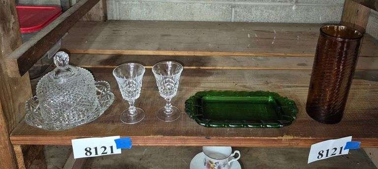 8137 Stoneware plates and bowls, drinking glasses, vases, Etc