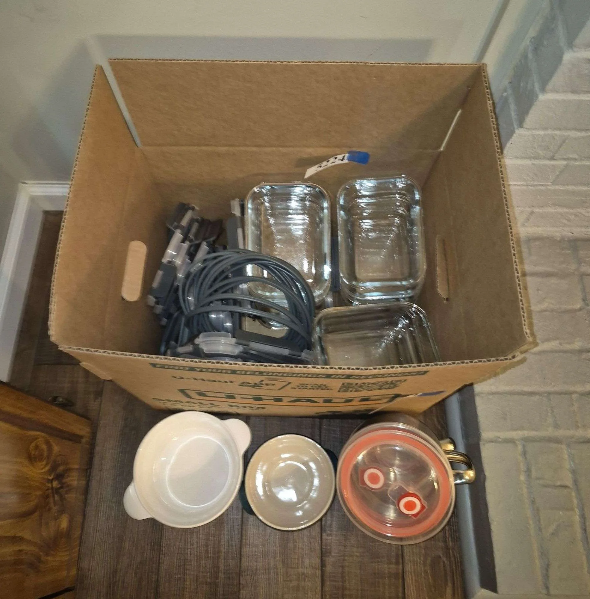 5224 Glass food containers with plastic lids, stainless bowls with lids, Etc