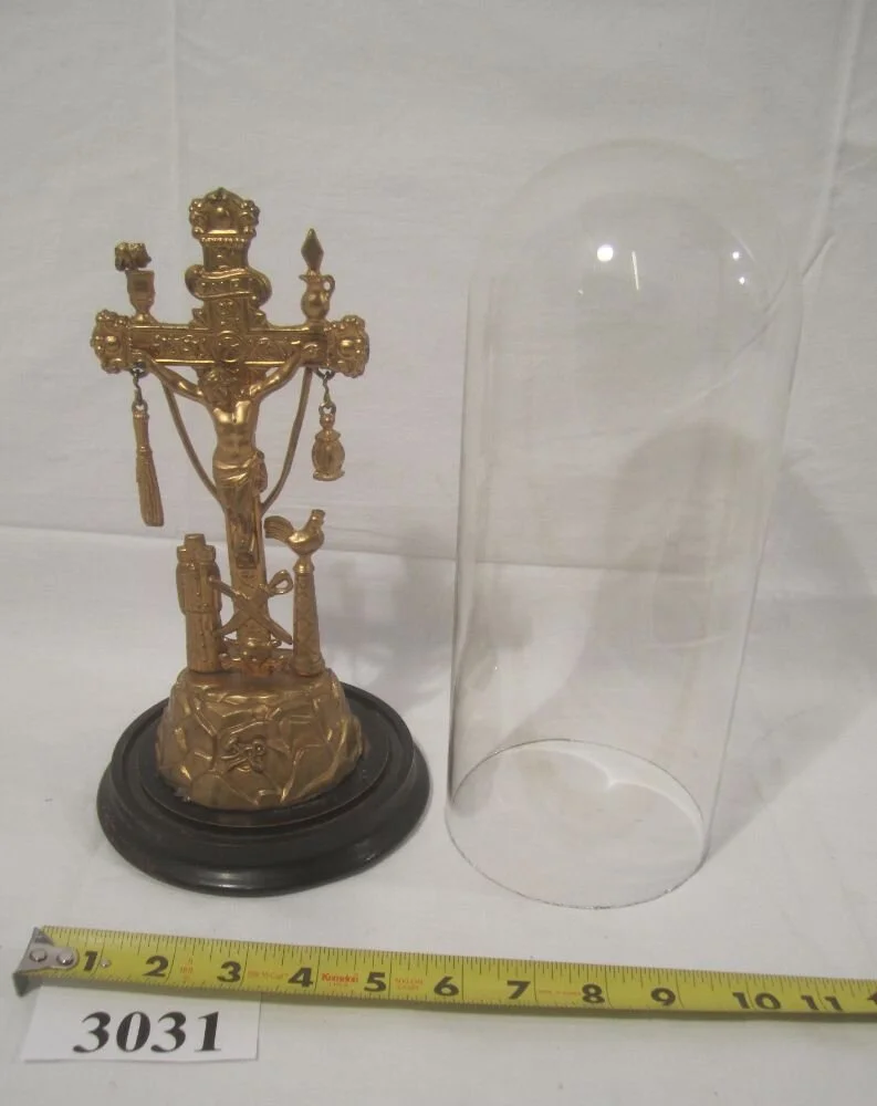 3031. Cross in glass dome with wood base