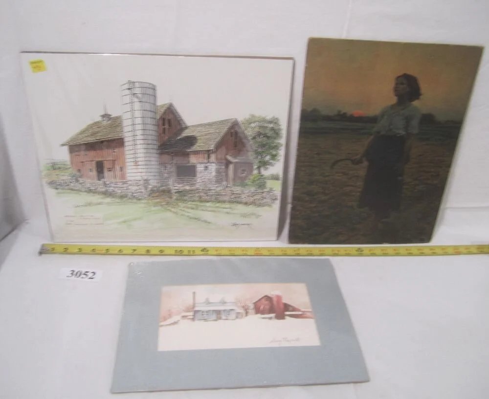 3052. Signed barn painting, signed barn drawing, loose print.