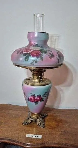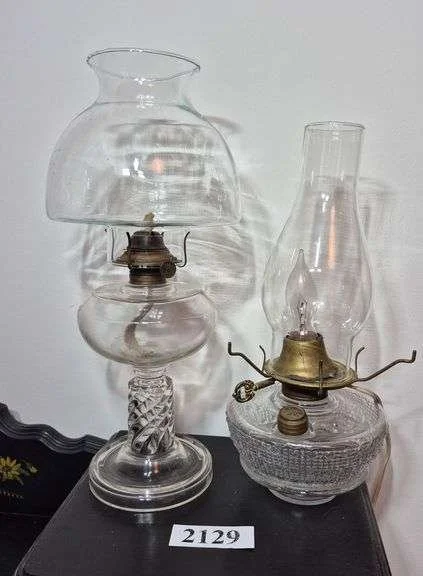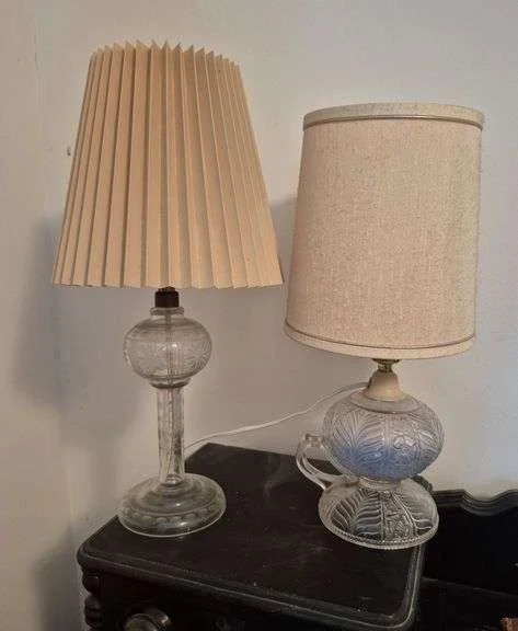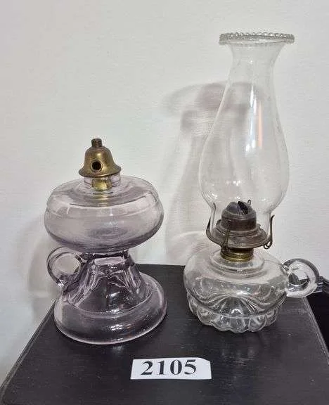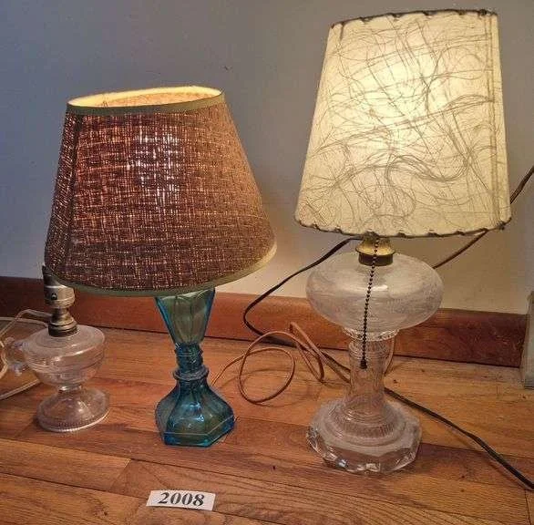 2095 Electrified finger lamp, etched glass dresser lamp