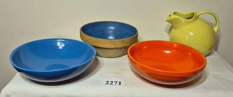 2271 Bowls, ball pitcher including Hall pottery