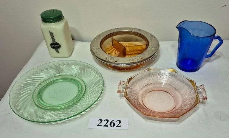 2045 Juice pitchers, cocktail shaker, egg beater, butter dish, Etc