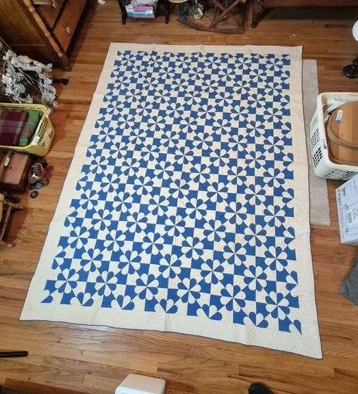 2038 Antique blue hand-stitched quilt